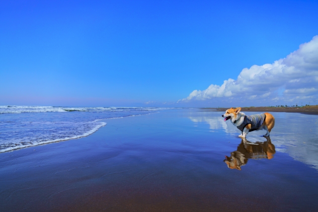 潮風を感じながら愛犬と砂浜散歩。