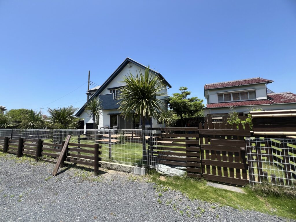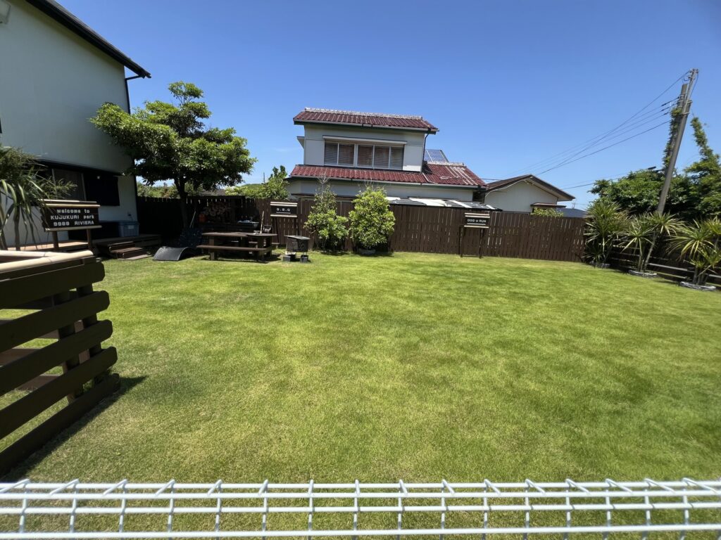 海まで100m、芝生の庭と露天風呂とドッグラン、そして満天の星が迎えてくれます。