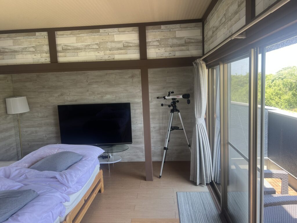 望遠鏡のある部屋で、夜は天体観測を。空気の澄んだこの場所だからこそ見える星たちが、旅に深みを与えてくれます。